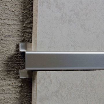 Aluminium Listello with 10mm height (8-9mm thick mosaics and tiles). 10mm Sightline. Matt Silver anodized finish.
