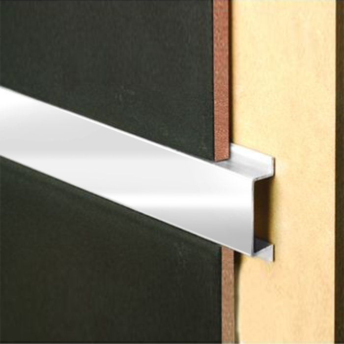 Aluminium Listello with 10mm height (8-9mm thick mosaics and tiles). 30mm Sightline. Bright Silver anodized finish.