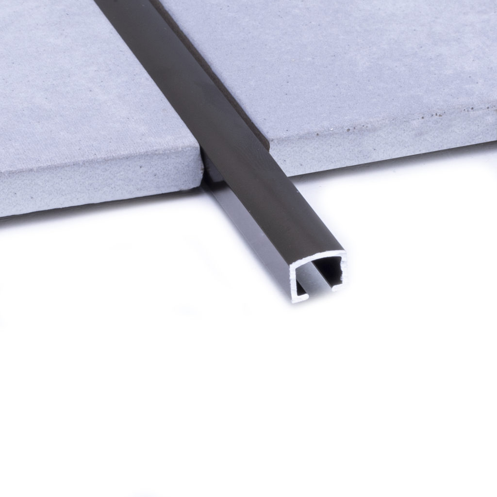 Pencil Listello for press-fit installation in wall tiles as a d?cor strip. 10mm sightline x 8mm depth (6-20mm tiles), press into gap to desired depth. Matt Bronze anodized finish.